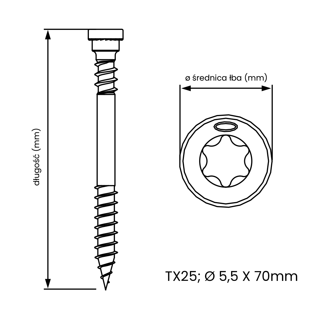 Terrasotec Trilobular, A2; INOX; TX25; 5,5 x 70mm; 200szt.